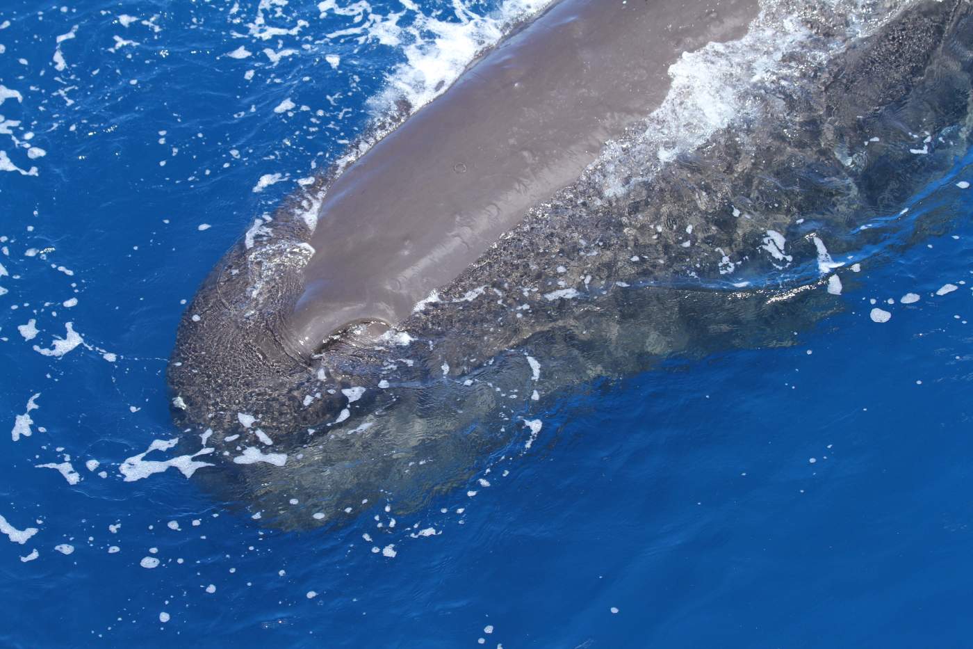 抹香鯨是世界上體型最大的齒鯨,而它們的外觀也是令難忘的,先別說他的大頭就引人注目以外,噴氣的樣子還歪歪斜斜往左側,就是這抹與眾不同的它,展現的個性也相對溫和,有別於其他大型鯨類的動作,他們會像漂流木般緩緩的隨著浪流在海面休息換氣,最喜歡待在安靜的海域進行活動,有時它們也會湊近船隻鑽繞轉圈,在夏季五月份到九月份的時間裡,是在花東外海相遇它們的最好時期。