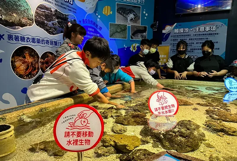 觸摸體驗可以摸看看海星、狗鯊、螺、陽隧足等海洋生物,並透過虛擬觸摸池,投影互動方式,認識海洋生物的防身術。